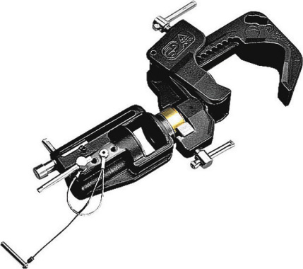 Specjalistyczne zaciski z możliwością regulacji rozwarcia szczęk. Umożliwiają mocowanie i podwieszanie różnych akcesoriów i sprzętu oświetleniowego. Posiadają gniazda żeńskie (16 mm lub 28mm) lub adaptery (trzpienie) 16 mm i 28 mm.